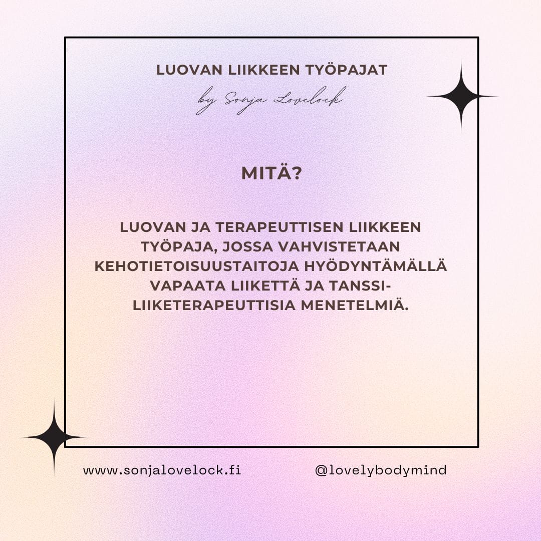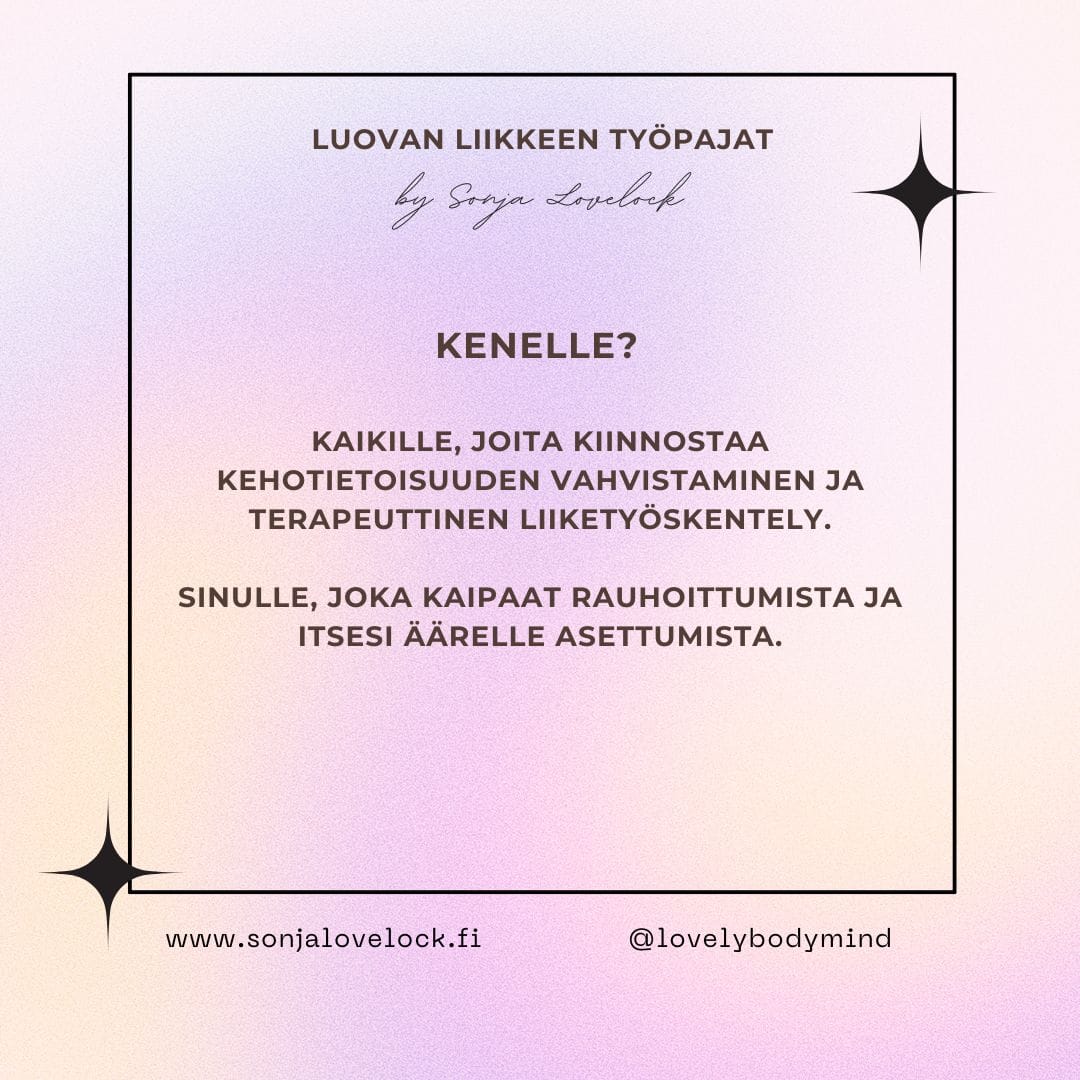 Lämpimästi tervetuloa mun kanssa liikkumaan ja ihmettelemään.